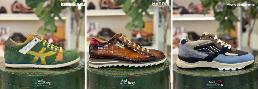Naast comfort en kwaliteit is er bij Aad van den Berg volop ruimte voor trendy heren sneakers die perfect aansluiten bij het actuele modebeeld. Met meer dan 20 topmerken bieden wij ook voor mannen een ruime keuze aan sneakers die stijl en vernieuwing uitstralen. Zo staat Kamo-Gutsu bekend om zijn uitgesproken retrostijl, waarbij vintage invloeden worden gecombineerd met moderne materialen en een comfortabele pasvorm. Het Italiaanse merk Harris richt zich op de man die écht durft: out-of-the-box ontwerpen, bijzondere kleurcombinaties en vakmanschap maken deze sneakers exclusief en uniek. Ook Tommy Hilfiger is niet meer weg te denken uit het straatbeeld, met trendy heren sneakers die sportieve invloeden combineren met een herkenbare, moderne stijl. En als laatste mag Floris van Bommel, het bekende Nederlandse merk, niet ontbreken: zijn sneakers staan bekend om hun innovatieve designs, opvallende details en perfecte balans tussen trend en draagbaarheid. Wat een sneaker écht trendy maakt, zit in het samenspel van vorm, kleurgebruik, materiaalkeuze en afwerking. Bij Aad van den Berg selecteren we ieder seizoen opnieuw stijlvolle comfortabele schoenen die niet alleen met de mode meegaan, maar ook van hoge kwaliteit zijn en een bijzondere, exclusieve uitstraling hebben.