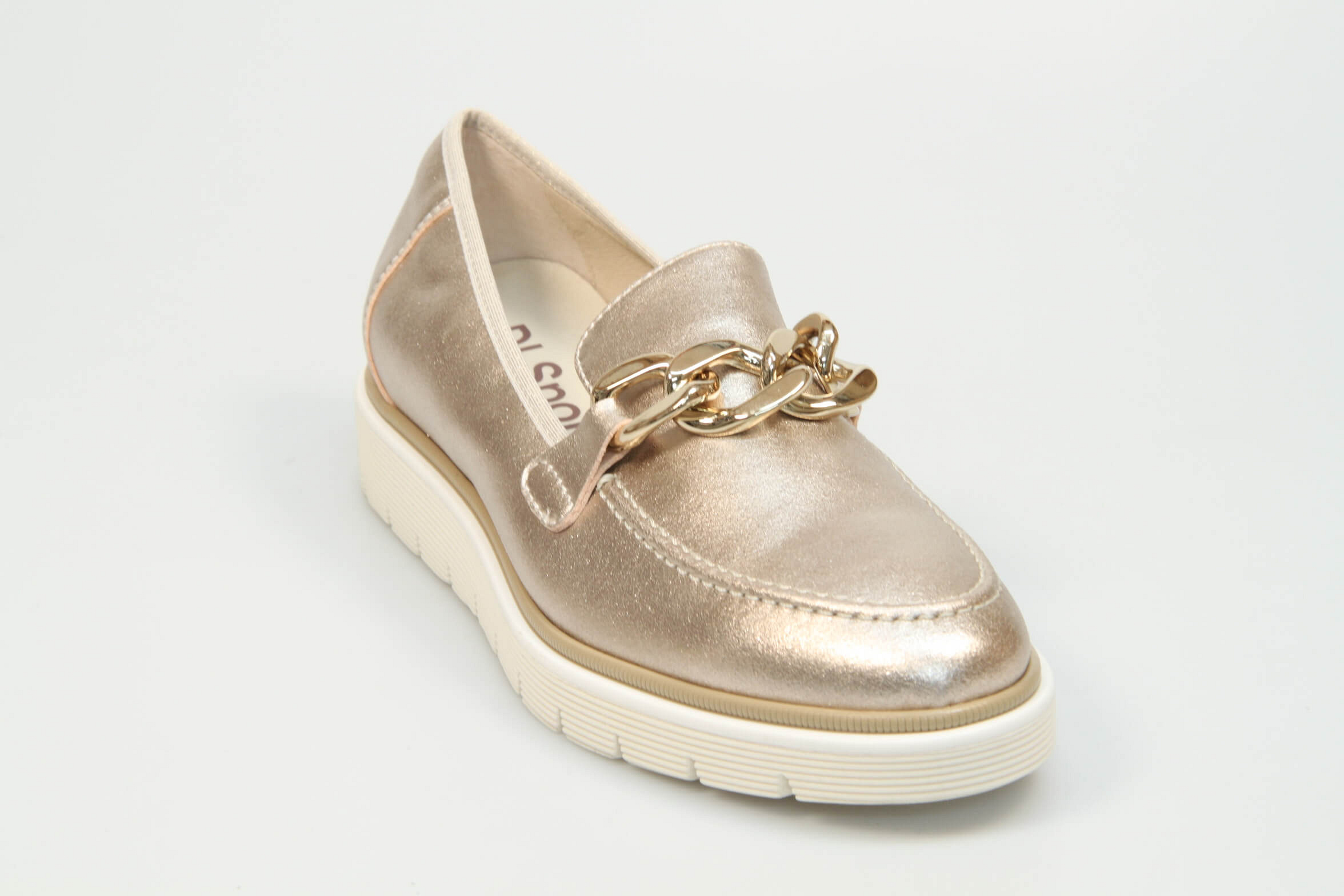 Voeg een vleugje elegantie toe aan je dagelijkse garderobe met de DLSport Damesschoenen Instappers in een verfijnde bronskleur. Deze instappers zijn een stijlvolle keuze voor de modebewuste vrouw die comfort net zo belangrijk vindt als uitstraling. DLSport, bekend om zijn hoogwaardige afwerking en oog voor detail, heeft met bestelnummer 211003018 en fabrikantcode 5299 483 een prachtig paar gecreëerd dat in de kleur V3 marsa platino schittert. Het metallic materiaal van de schoen zorgt niet alleen voor een luxueuze uitstraling, maar ook voor een duurzame kwaliteit die bestand is tegen de tijd. De rubberen zool biedt uitstekende grip en flexibiliteit, ideaal voor zowel een actieve levensstijl als een casual dagje uit. Dankzij de leren voering blijft je voet comfortabel, terwijl het ingebouwde voetbed extra ondersteuning biedt, ongeacht de activiteiten van de dag. Deze instappers zijn niet alleen een visuele verrijking van je schoenenkast, maar ook een investering in kwaliteit en comfort. Zoek niet verder voor een veelzijdig paar schoenen dat moeiteloos combineert met zowel je werkkleding als je weekendoutfits. Laat je verleiden door DLSport, waar mode en functionaliteit hand in hand gaan en ontdek het verschil.Specificaties